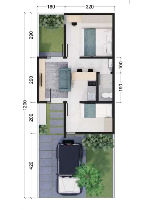 Greenland Kemang Bogor menghadirkan tipe 30/60 rumah dua lantai, dengan 1 Lantai, 1 KM Mandi, 2 KM Tidur